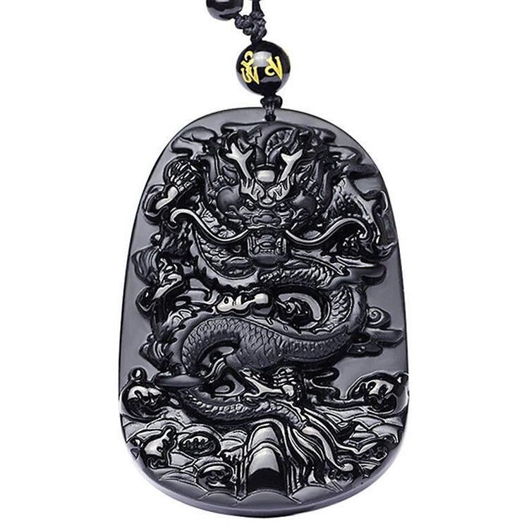 Natural Black Obsidian Dragon Protection Necklace